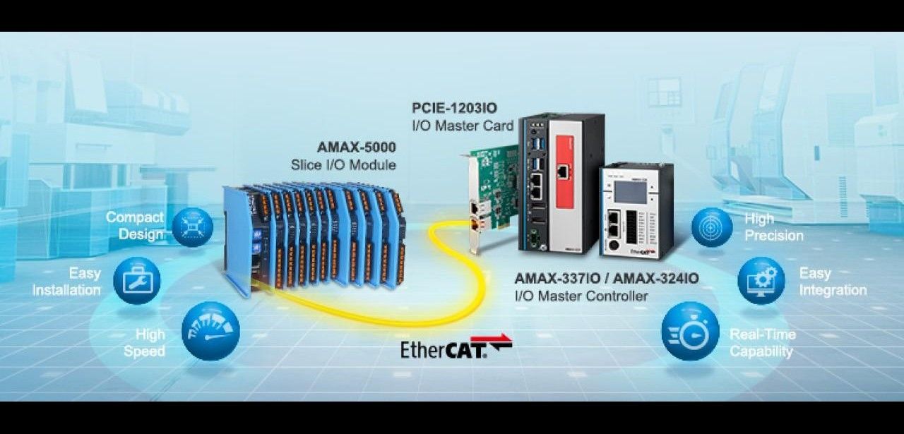 AMC provides the EtherCAT Slave Coupler AMAX-5074 paired with the AMAX-5000 series as a modular I/O solution tailored for automation companies. Leveraging EtherCAT as its bus protocol, the system ensures high-performance data exchange and deterministic timing. The modules integrate seamlessly into existing machinery with compact and flexible connectivity. Users can customize their setup by selecting from a range of analog and digital input and output modules matched to application requirements.