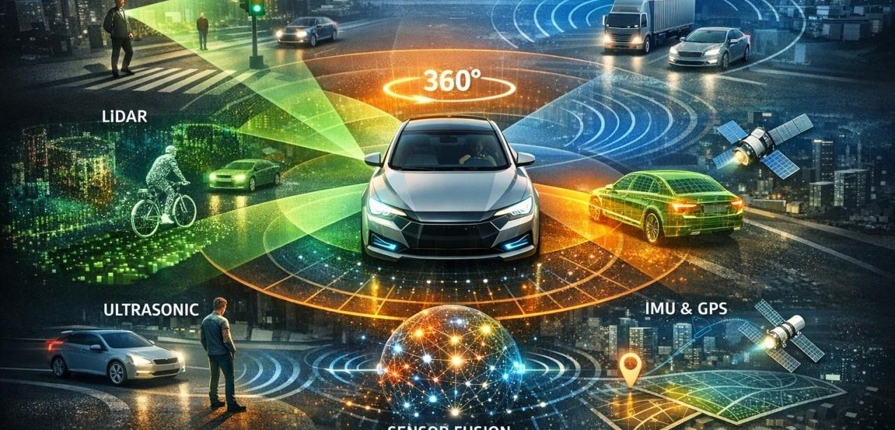 Autonomous vehicles utilize a diverse sensor suite including cameras, radar, LiDAR, ultrasonic modules, and inertial measurement units coupled with GPS. Cameras provide visual imagery yet underperform in darkness and glare. Radar detects object distance and speed in all weather but at limited resolution. LiDAR generates precise three-dimensional point clouds for depth perception yet exhibits light sensitivity. Ultrasonic sensors excel at short-range obstacle detection, while IMUs combined with GPS maintain localization.